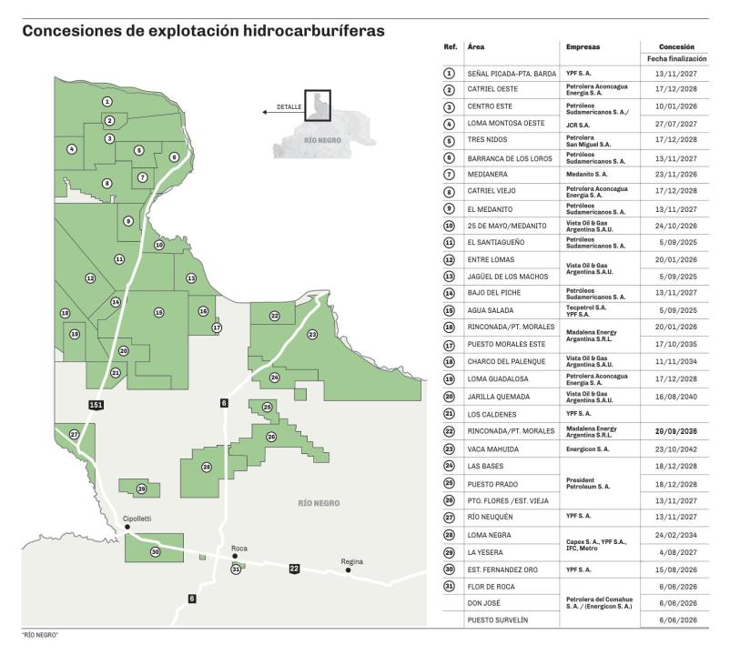Un detalle extra que posee Río Negro bajo la manga en que los bloques ubicados más cerca de Neuquén, sobre el paralelo que divide a las provincias, cuentan con potencial de desarrollo de Vaca Muerta. Algo que podría disparar el interés de las empresas en renegociar sus concesiones.