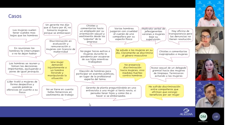 Uno de los puntos que sí dan altos son hombres que piden que mujeres no hagan tareas por el esfuerzo físico: el 26% de los encuestados marcó haberlo visto varias veces. Esto tiene «un sesgo bastante prevalente en nuestra industria«. Otro es sobre comentarios inapropiados del aspecto de una mujer: el 20% seleccionó haberlo visto muy seguido.