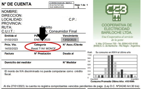 En cuanto a la Cooperativa de Electricidad Bariloche, que abarca una de las localidades más turísticas de la provincia, hace alusión al grupo al que se pertenece en la información sobre «Categoría«. En este caso, aparece como «N1» en referencia al Nivel 1 de mayores ingresos.