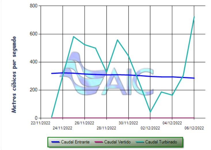 Esta situación se ve en especial en las represas de punta de la cuenca del Limay, comenzando por Alicurá, Piedra del Águila y Pichi Picún Leufú que dispararon su generación poco después del mediodía. En tanto que, en medio de una extensa sequía, el agua está siendo en estos momentos contenida en El Chocón que mantiene una generación media y estable.