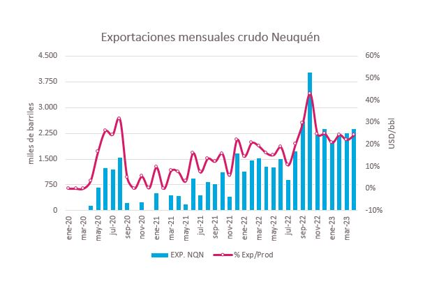 En lo que va de los cuatro primeros meses del año, la provincia realizó envíos por 8,89 millones de barriles, lo que equivale al 23% de la producción provincial. De esta forma, generó 635 millones de dólares en las exportaciones de petróleo.