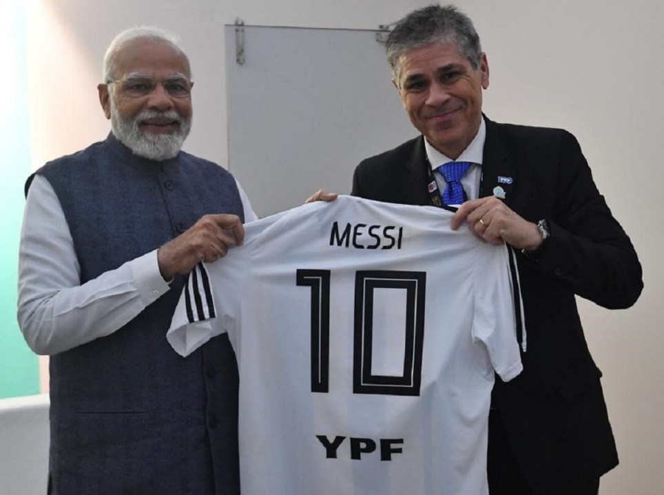 El presidente de YPF, Pablo González, y el CFO de la firma, Alejandro Lew, se reunieron con el primer ministro de la India, Shri Narendra Modi, en el marco de la Semana de la Energía, el principal evento del sector en ese país. También estuvo presente el encargado de negocios de la Embajada Argentina en la India, Franco Senillani.