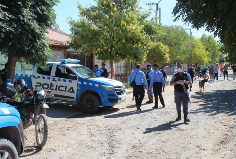 De repente y a pesar de la cuarentena obligatoria, el barrio Sayhueque, donde se halló a los presuntos asaltantes, se llenó vecinos revolucionados por el hecho. Además, en el lugar se concentraron varios efectivos de la policía que aguardaban por la orden de allanamiento para ingresar al inmueble.