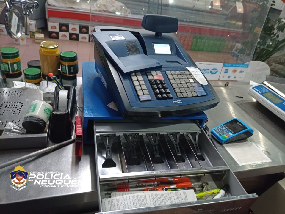 Las tres personas que tomaron el taxi fueron demoradas. Del interior del habitáculo secuestraron computadoras, 6900 pesos que tomaron de la caja registradora, un televisor LED de 42 pulgadas, un parlante portátil y dos celulares.