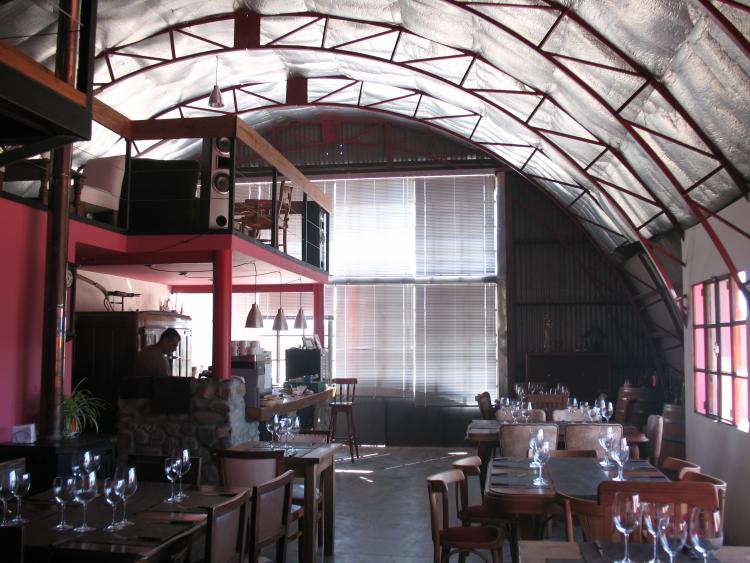 A pocos metros de allí hay otro galpón, un viejo silo parabólico que fue reciclado para la instalación de la champagnera y del restaurante.