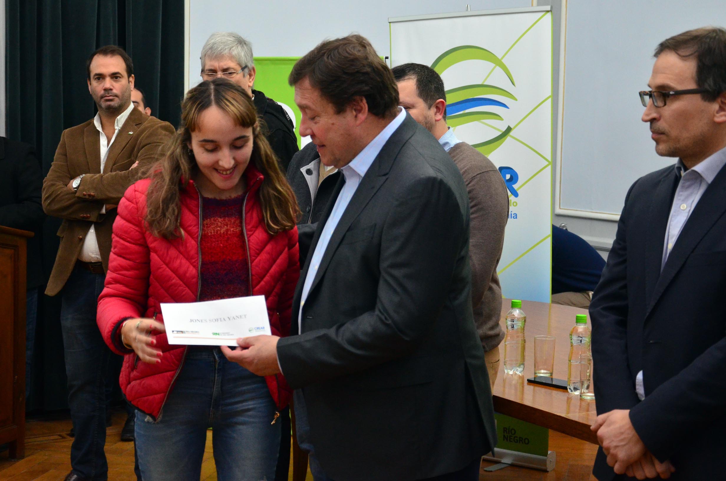 La entrega se realizó en el Salón Gris durante un acto que fue presidido por el gobernador Alberto Weretilneck, junto al vicegobernador Pedro Pesatti, acompañados por los ministros de Agricultura, Ganadería y Pesca, Alberto Diomedi; de Economía, Agustín Domingo; y del subsecretario de la Agencia Crear, José María Apud.