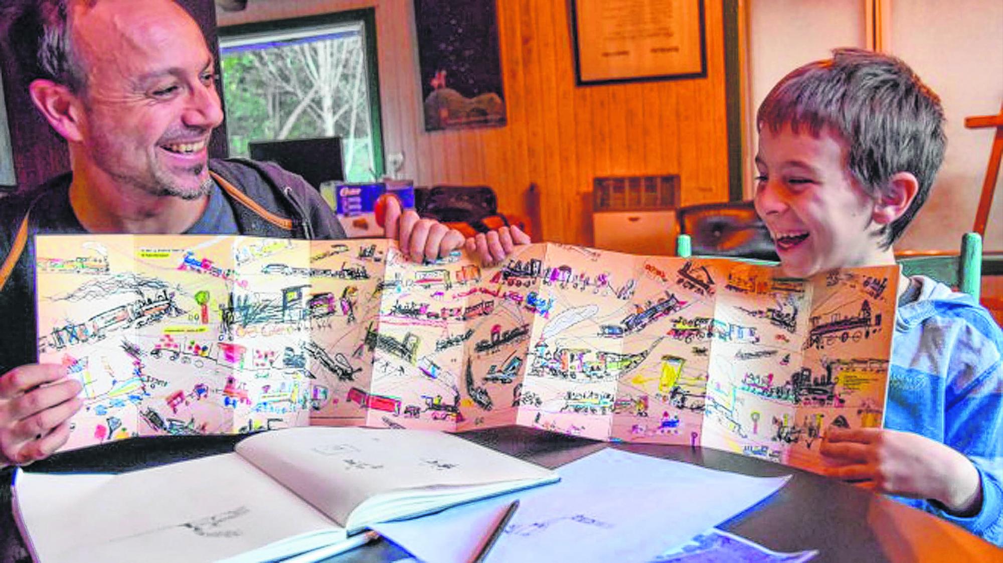 Pablo Bernasconi y su pequeño hijo Franco, coautores del libro “Quetren quetren”.