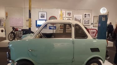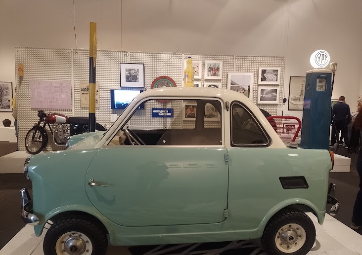 Una prueba de eso que son y dicen “las cosas” sin que esté escrito en ningún lugar, es la botella de lavandina sobre el microcoche Dinarg D-200, uno de los apenas trescientos que se construyeron en el país, una pieza de colección. La botellita ahí arriba aquí, significa que está en venta, un código argentino para avisar que un coche está en venta sin decirlo y fue -es- una costumbre para evitar el pago de impuestos.