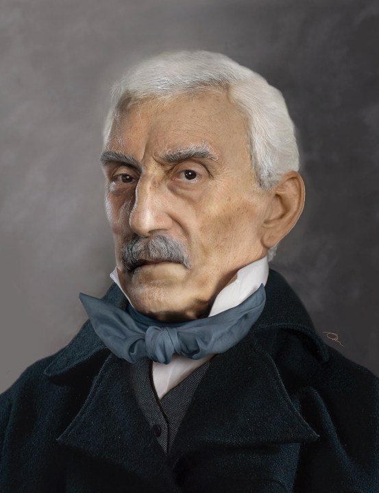 Luego de ese retrato fotográfico basado la conocida “pintura de la bandera” y que tuvo un recorrido institucional que lo llevó, en 2019, incluso hasta la Casa Rosada, Ghigliazza, dados los muy buenos resultados, decidió trabajar sobre el daguerrotipo tomado en 1848 y comenzar, desde allí, un increíble proceso de rejuvenecimiento de José de San Martín.