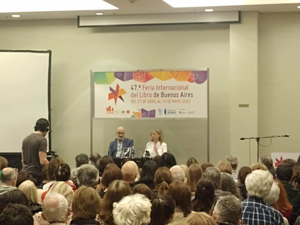 Adentro hay aún más gente que afuera. Padres e hijos que se sientan en el piso a ver obras de títeres que se ofrecen en algunos stands; padres e hijos que se sientan en las columnas de los pabellones para descansar y bajar el intenso calor que provoca la humedad y la cantidad de personas que la recorren; cientos de jóvenes que hacen fila, libro en mano, para que María Florencia Freijo les firme el ejemplar de «Decididas»; cientos de personas, adultas en su mayoría, que esperan poder ingresar a la sala José Hernández, a oir a Arturo Pérez Reverte en la presentación de su nuevo libro «Revolución»; otras cientas que escuchan atentas y risueñas la presentación de Fernando Aramburu, el autor de «Patria», ese libro ambientado en los años de violencia política en el País Vasco, su lugar de origen, y que llegó a Netflix hecho serie. Aramburu ha venido ahora a presentar su nueva novela, «Hijos de la Fabula», en una charla con la periodista cultural Hinde Pomeraniec. Todos los días son días intensos y agitados entre los pabellones de la Feria.