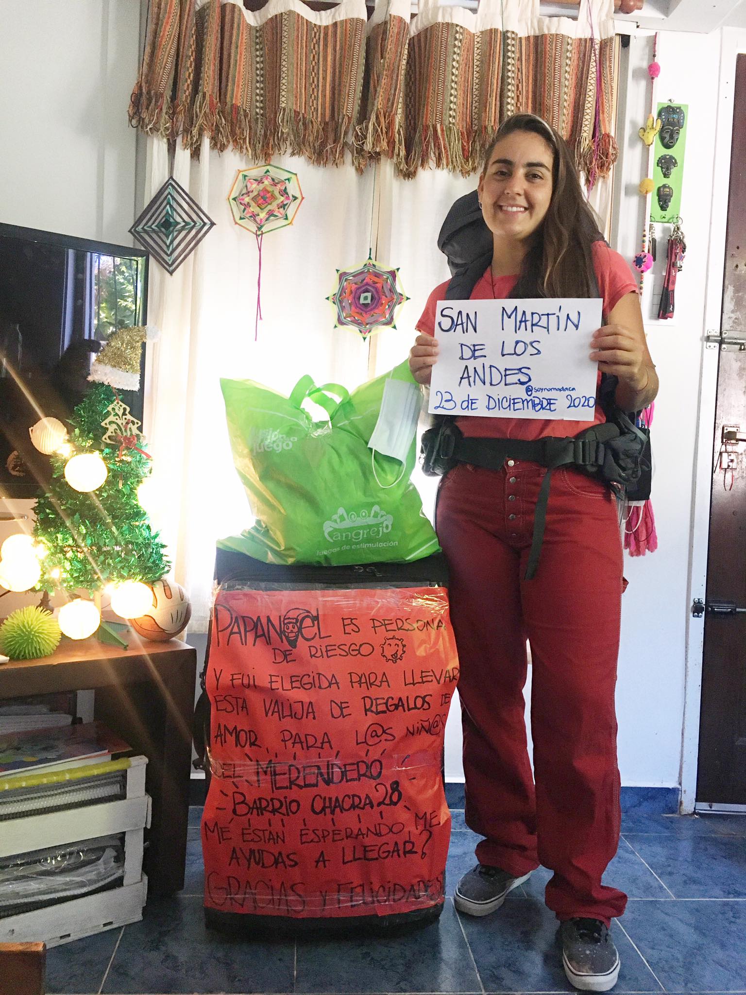 Es mochilera y viaja a la cordillera a «remplazar a Papá Noel»