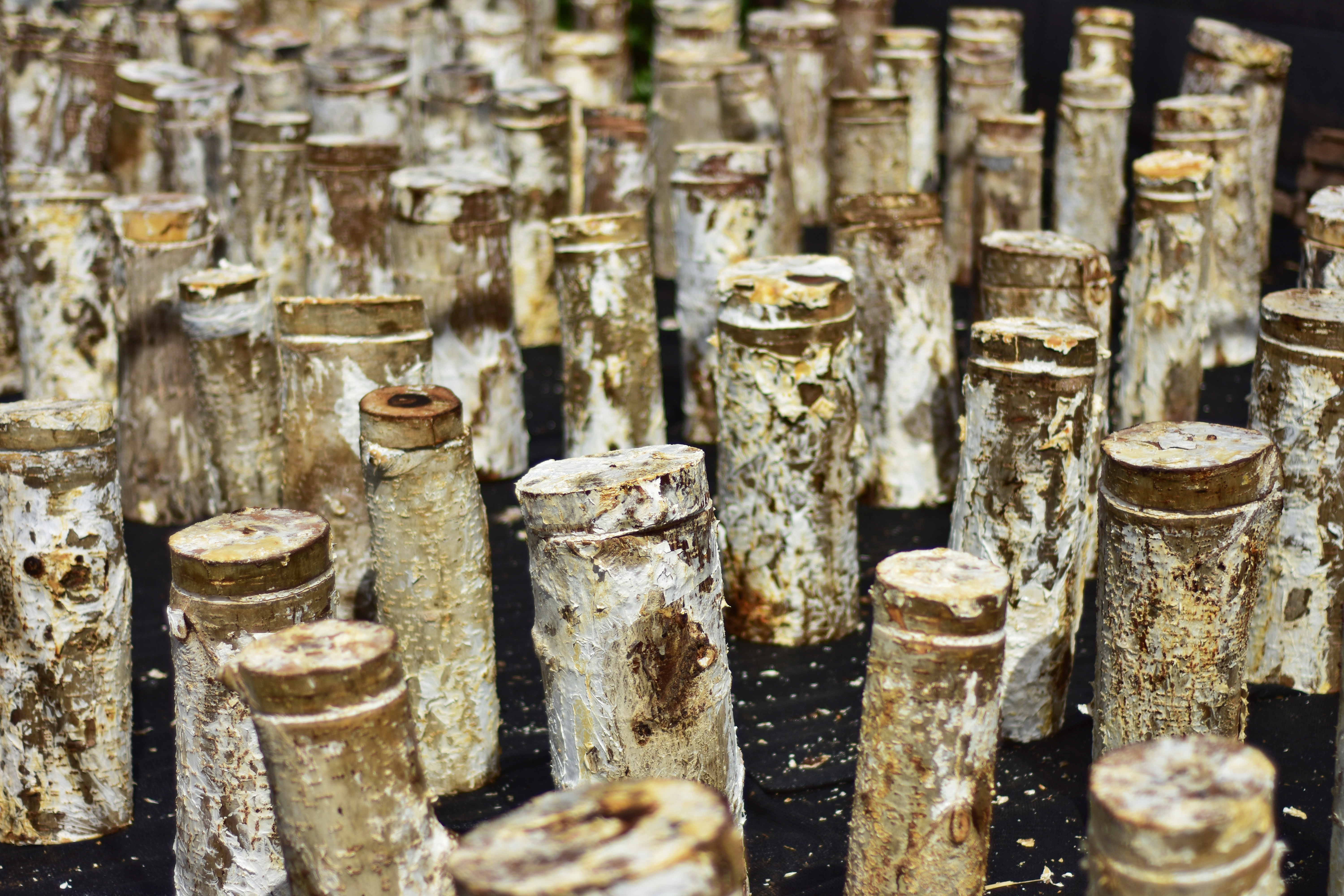 La escala siguiente es el invernadero con las gírgolas: buscaron los troncos de los álamos, los cortaron, limpiaron, inocularon y taparon. El riego es por microaspersión y la cobertura de luz es del 80%, entre la media sombra gris y la lateral doble negra.