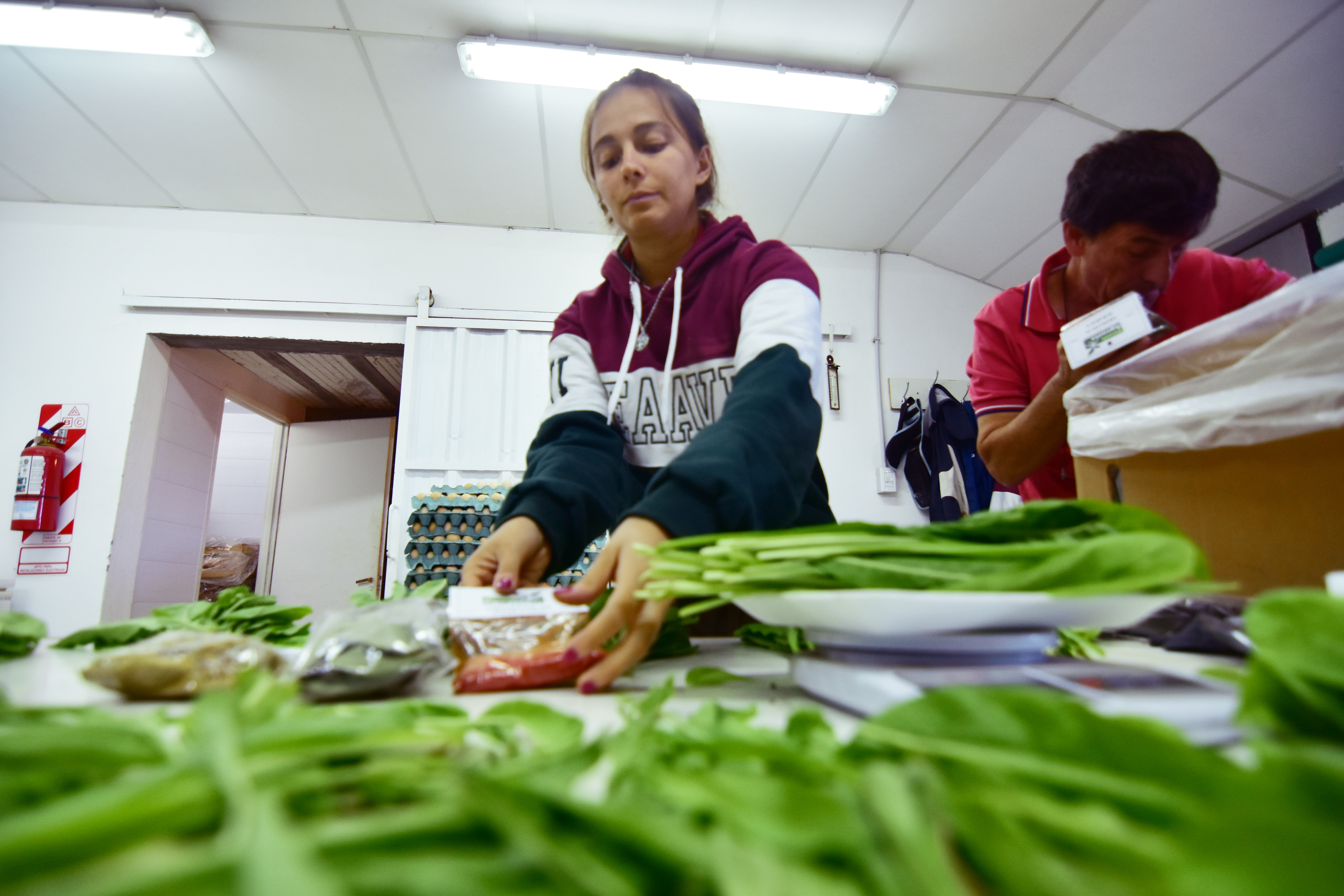 La recorrida continúa por el deshidratador solar, la huerta orgánica y la sala donde Miguel, uno de los empleados, prepara ahora los productos que se venderán en la feria el sábado. Luego es el turno de la granja:gallinas ponedoras, conejos, ovejas. Producen el forraje con el que se alimentan los animales. Y proveen de huevos y acelga al comedor.