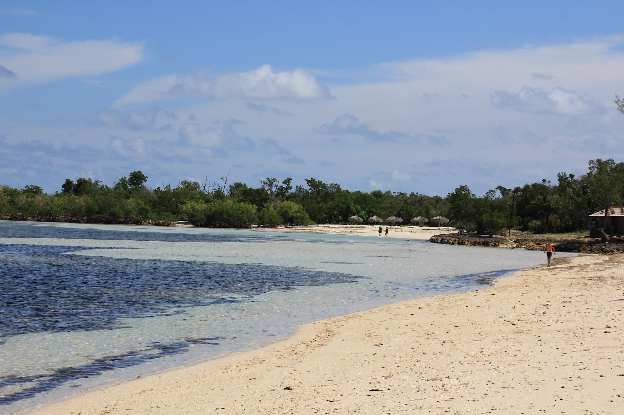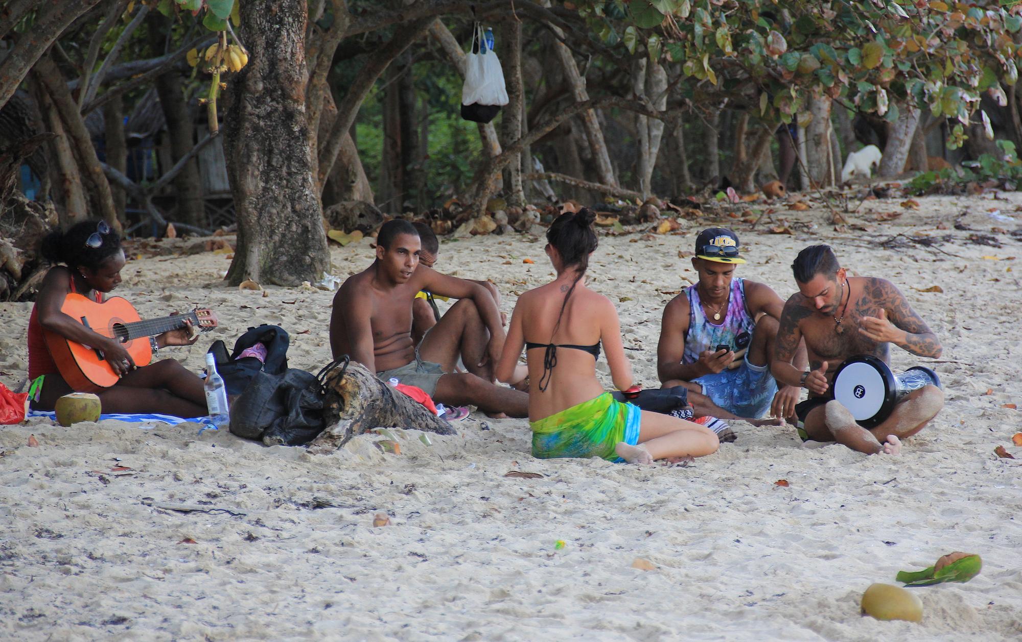 Salimos de Holguín hacia La Herradura. Sobre la ruta paramos en un puesto a probar el famoso guarapo -jugo de la caña de azúcar-. Además, comemos 2 empanadas -coco y guayaba- y 3 barras de cereales (U$S1). A la vendedora, que es simpática, le comento que los locales son muy amables. “Los cubanos atienden mejor a los turistas que a los propios cubanos”, opina. Aconseja ir un poco más adelante de playa La Herradura y llegar a Punta Tomate. Ahí vamos. La bahía es amplia y hermosa. Ni bien pisamos la arena blanca aparece un cubano buena onda: “Soy Leiker, soy sastre”. Me regala un coco, nos invita a una fiesta y nos presenta a una señora que alquila habitaciones en Puerto Padre, el pueblo más cercano, a unos 40 kilómetros. Están con un grupo de 15 personas: una pareja canadiense con su hijo, varios italianos y algunos cubanos. “Son todos de habitaciones distintas pero acá vinimos juntos: somos familia ahora”, dice Leiker. Empieza a llover. Levantamos campamento y nos vamos. Antes, hacemos una foto con Leiker.