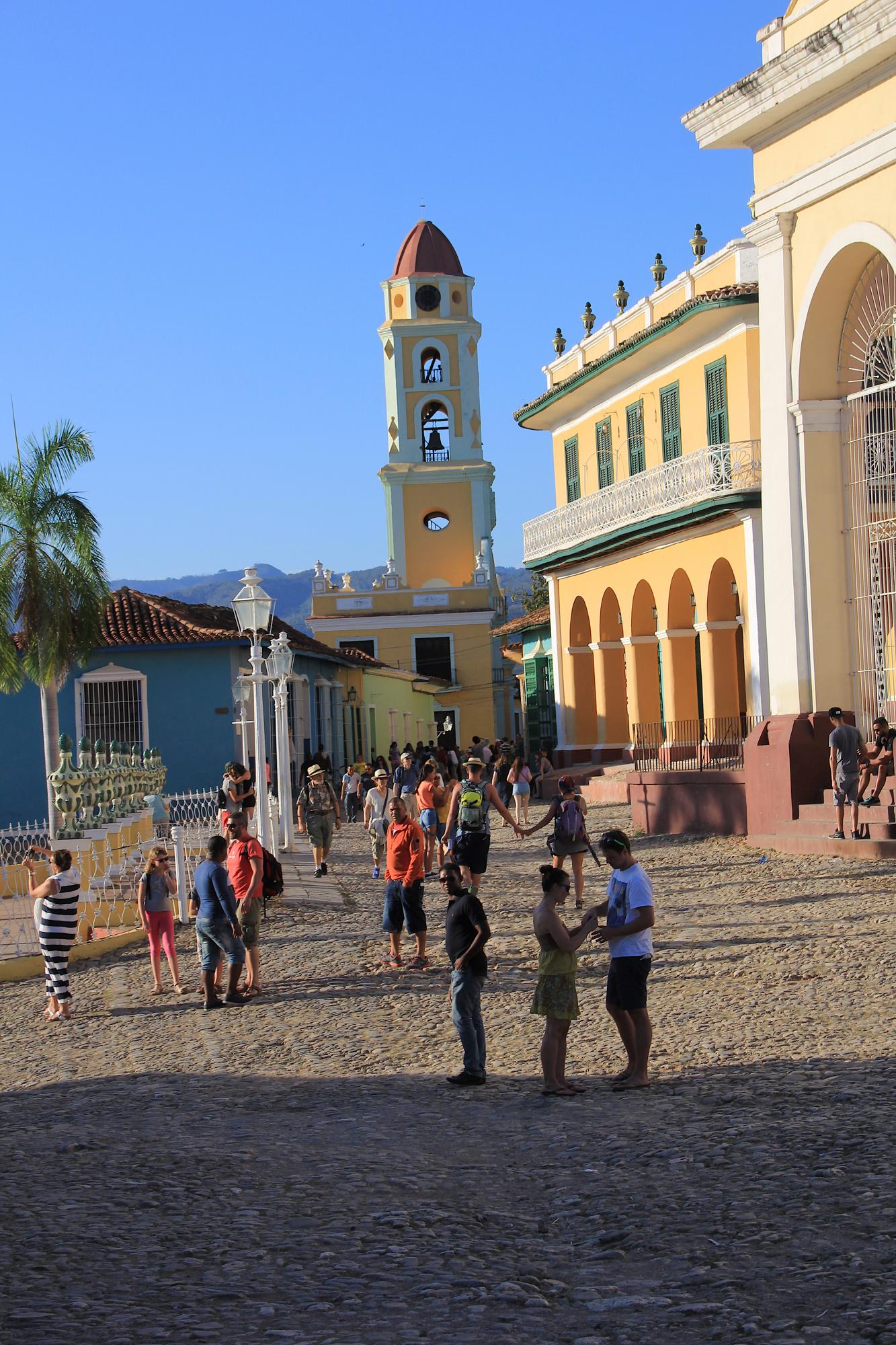 Saliendo de Cienfuegos aparecen grandes edificios. “Son viviendas sociales muy buenas”, me cuentan. Más de un país latinoamericano las envidiaría. Unos 83 kilómetros después llegamos a Trinidad. Su centro colonial es admirable: de los que mejor se conservan en el continente. Calles adoquinadas, venta de arte y bares modernos donde extranjeros bailan con locales. Fuera del circuito turístico aparecen calles de ripio y casas precarias. La amabilidad del centro se diluye en los alrededores: se respira indiferencia y hastío ante turistas que, con sus cámaras, a veces se exceden en una especie de safari.