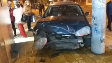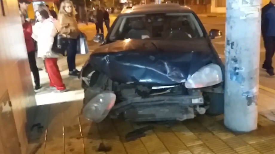 El Vento terminó su carrera en pocos segundo chocando contra un poste ubicado sobre la vereda de una tradicional farmacia. Allí, este suntuoso vehículo sufrió graves daños ya que resultó con el radiador averiado como producto del impacto.