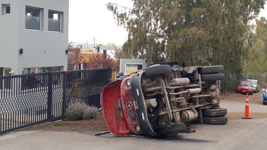 Un camión Mercedez Benz volcó en el sector de ingreso del barrio Bocahue en Neuquén, ubicado detrás de la Legislatura y en la zona de acceso a los barrios cerrados en ese sector de la ciudad.