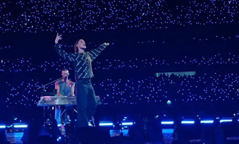 La estrella pop local participó del tema «Let Somebody Go», uno de los pasajes más intimistas del espectáculo, que en las cuatro noches anteriores había cantado el líder del grupo Chris Martin a solas en el piano junto a H.E.R., la artista que realiza los números de apertura en este tramo de la gira sudamericana.