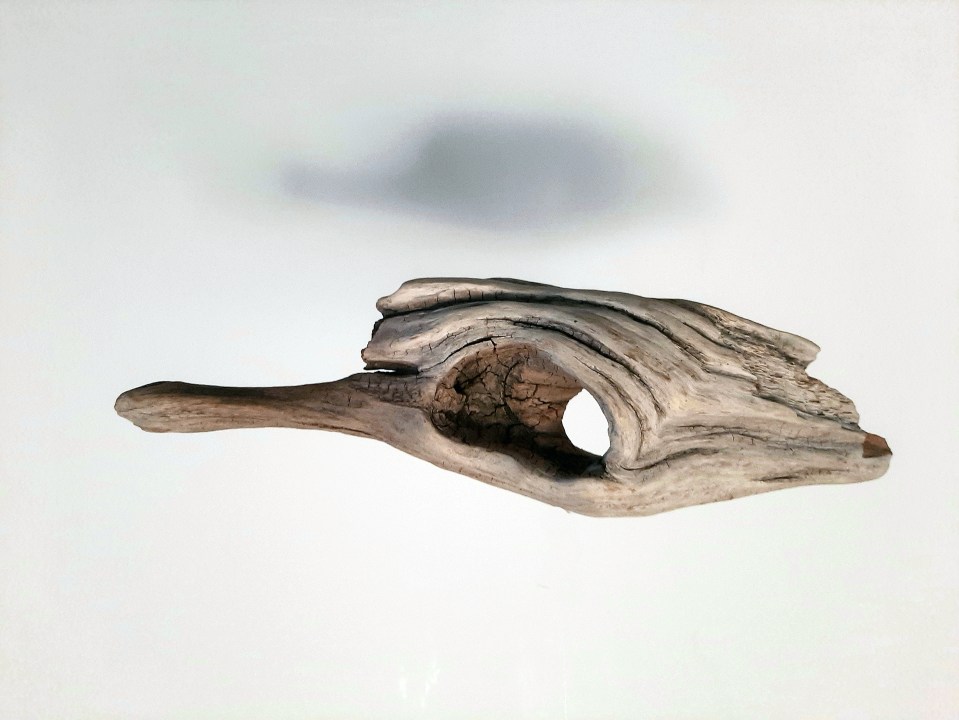 Algunos troncos fueron intervenidos por Juárez y otros por la misma naturaleza. “Éstos troncos son como pequeñas esculturas en sí mismas. Porque han sido tallados por la naturaleza: por el viento, la arena y el agua. Y bueno, fui recogiendo una gran cantidad (120), que tiene la instalación. La mitad de los cuales los intervine con pintura, con collage y con oleo”, explicó.
