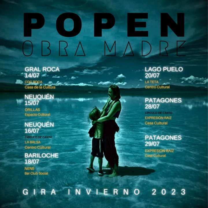 Este sábado 15 Popen se presentará en Neuquén en el Espacio Cultural Orillas. Las entradas anticipadas tienen un valor de $1.500 y en puerta de $2.000. Luego, el domingo estará en Balsa de las Perlas en Wontanara, un centro de arte y salud, donde intervendrá en un seminario de canto.