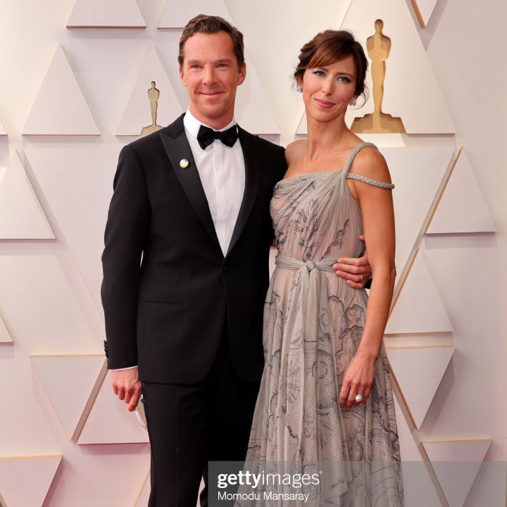 El nominado a Mejor Actor protagonista por “El Poder del Perro” ha utilizado un pin en su traje, con los colores de la bandera de Ucrania en apoyo al territorio invadido. Junto a él, posa su pareja, la directora de teatro Sophie Hunter.