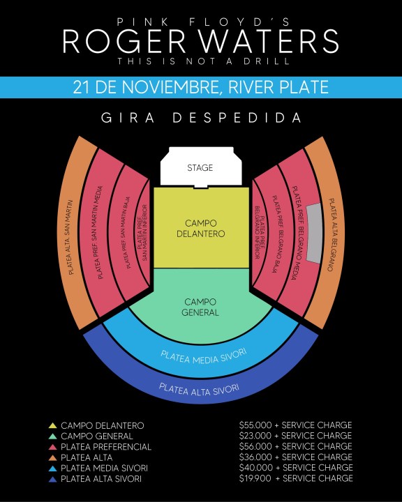 Las localidades para el adiós a Waters, quien el 6 de septiembre y en medio de su recorrida planetaria cumplirá 80 años, tienen una preventa por 48 horas desde este lunes, a las 10, y desde el miércoles 10 podrán adquirirse a través de Allaccess.com.ar. Los precios de las entradas varían según la ubicación y el tipo de entrada.