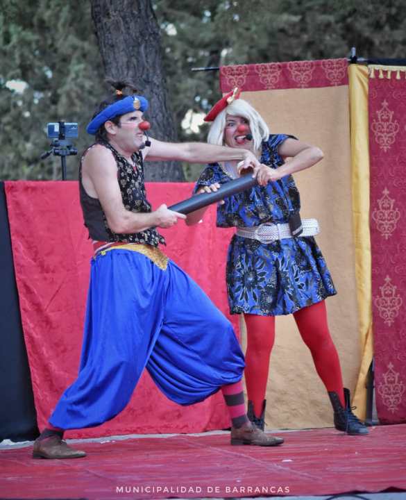 R: En común casi todo, somos dos familias con más de quince años de trabajo, recorriendo caminos alternativos, caminos que no forman parte del itinerante comercial, recorremos el interior neuquino en verano, donde la mayoría opta por destinos de alta rentabilidad para hacer temporada; dos compañías con vasta experiencia en espectáculos callejeros y trabajo para toda la familia. Es increíble cómo logramos sincronizar nuestros saberes y recursos, como si hubiésemos trabajado juntos los quince años. Por un lado, Dúo D2 tiene el recurso de la habilidad acrobática, malabares, la disciplina específica de circo que se potencia, por otro lado, con la experiencia del humor y el teatro de Entretenedores. Esas diferencias de saberes nos nutren absolutamente, Dúo D2 nos capacita en acrobacias y Entretenedores ayuda en la dirección general de puesta en escena y humor.