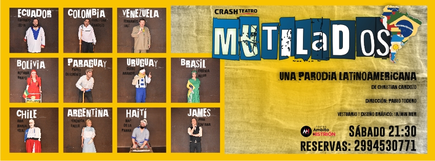“Mutilados”, una parodia latinoamericana, de Christian Cardozo, dirigida por Pablo Todero y estrenará este sábado, a las 21.30, en la sala Ámbito Histrión (Chubut 240). Las entradas, de 1200 pesos, se podrán adquirir al 0299 447-8276 / 0299 154530771.