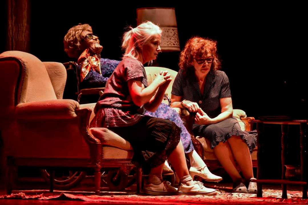 “Mi personaje es Gloria”, devela Palmer. “Yo lo compuse a partir del texto, que es como compongo todos mis personajes. Porque creo que los personajes, según mi maestro Carlos Gené, están en el texto, no hay que imaginar nada sino leer muchas veces el texto y ver qué es lo que dice el autor o autora sobre el personaje. Y ahí es como uno puede ir construyendo ese personaje. Una de las cosas que (los autores) dicen de Gloria es que sufre muchísimo de dolor de espalda y eso para mí fue muy importen, fue como un puntapié inicial para hacer esa composición”.