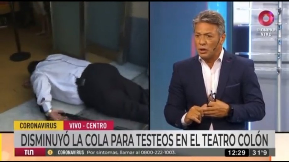 El cronista, Carlos Ferrara, estaba mostrando la fila para testeos en el Teatro Colón. A esa hora, la temperatura rozaba los 34° con una sensación térmica mucho mayor por la humedad de más del 60%.