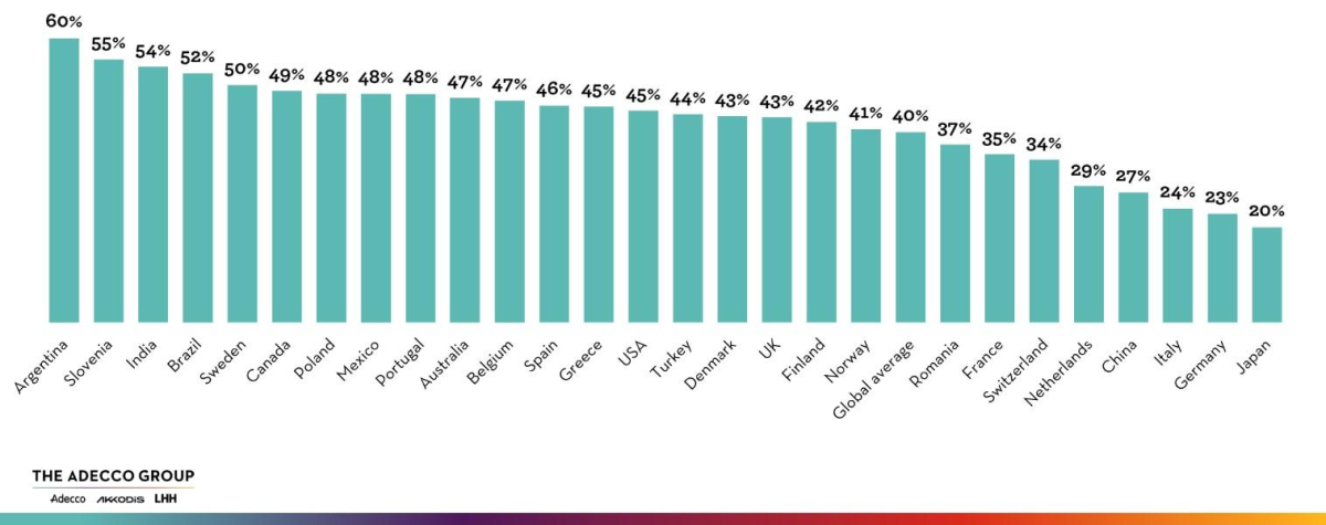 Los datos surgen de la investigación realizada por el Grupo Adecco “2024 Global Workforce of the Future”, donde se encuestó a 35.000 trabajadores de todo el mundo, incluyendo a 1.000 argentinos.