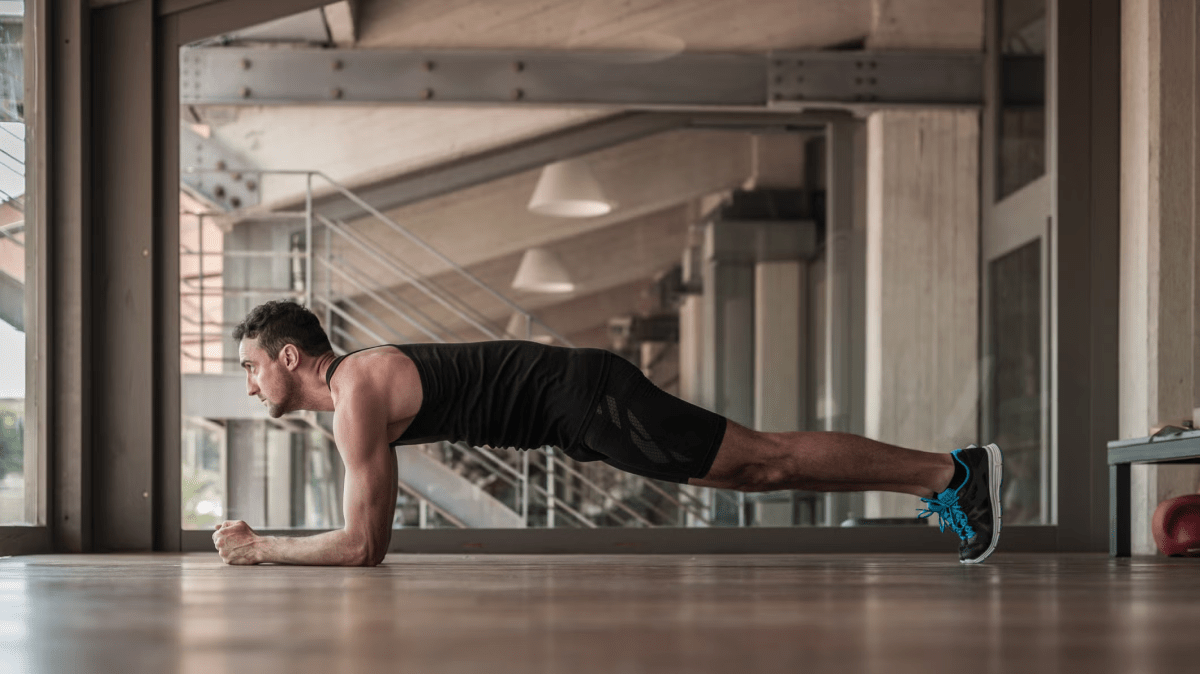 Apoyá antebrazos y puntas de los pies sobre una colchoneta. Mantené el cuerpo recto y el abdomen contraído durante 30 a 45 segundos.