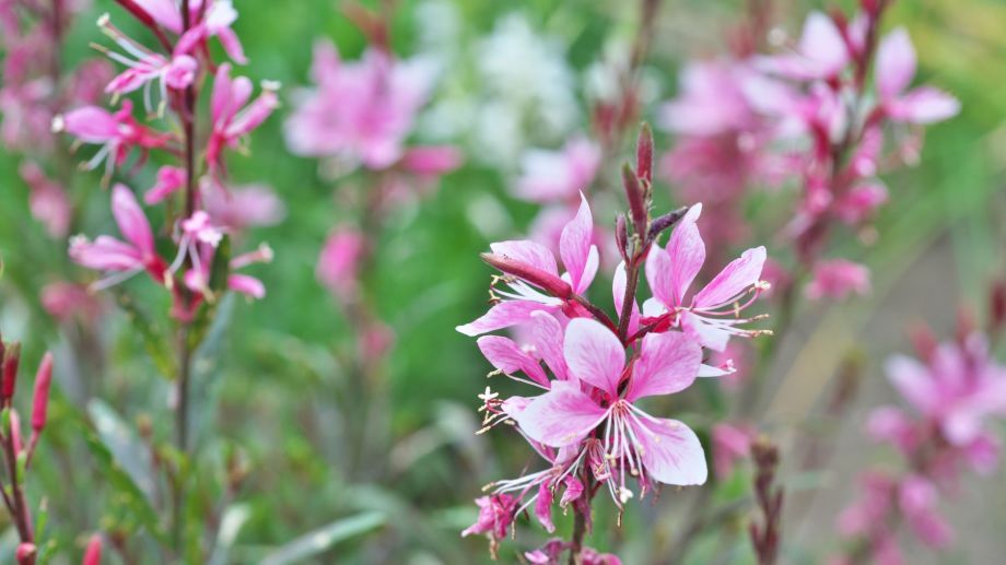 Una de las grandes ventajas de la gaura es su versatilidad. En jardines con estética silvestre, aporta un aire despreocupado y natural que combina perfectamente con otras herbáceas y arbustos. También puede incluirse en diseños más formales, como bordes de canteros o combinada con arbustos podados.