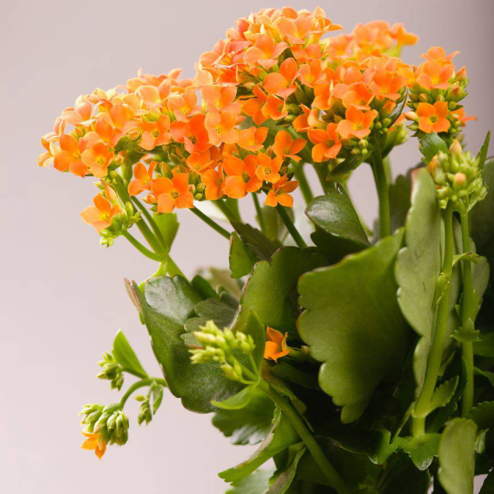 El kalanchoe es una planta muy agradecida, que florece durante todo el año con flores pequeñas y coloridas. Sus tonalidades van del blanco al violeta, pasando por amarillos brillantes. Aunque es sencilla de cuidar, requiere buena iluminación y un riego moderado, esperando a que el sustrato se seque antes de volver a hidratarla.