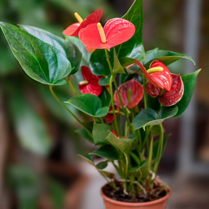 Con sus brácteas de colores intensos, el anturio se convierte en un verdadero protagonista en cualquier espacio. Aunque sus flores son discretas, las brácteas rojas o blancas capturan todas las miradas. Esta planta tropical es fácil de cuidar: prefiere ambientes húmedos y luz indirecta.
