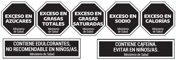 Además de los octógonos negros, los alimentos también deben incluir dos advertencias: “Contiene edulcorante, no recomendable en niños” y “Contiene cafeína, evitar en niños”. Estos dos componentes afectan a los más chicos dado que los edulcorantes pueden producir cambios de apetito y aumentar la preferencia por el gusto dulce. “El consumo de edulcorantes y cafeína en niños puede afectar su desarrollo metabólico, entre otras cosas”, explica el Dr. Sylveira. Éstas advertencias suelen estar presentes en muchos productos dietéticos, especialmente las bebidas que consumen muchos niños a diario. Por su parte, el consumo de cafeína puede generar ansiedad, hiperactividad, problemas de sueño y elevación de la tensión arterial.