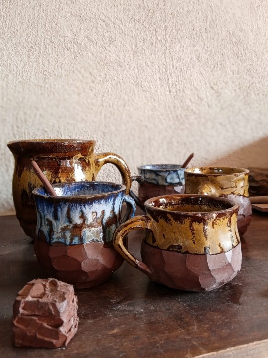 Los esmaltes los realizo yo. Con óxidos les doy color. Y actualmente estoy investigando y buscando colores con cenizas volcánicas y vegetales.