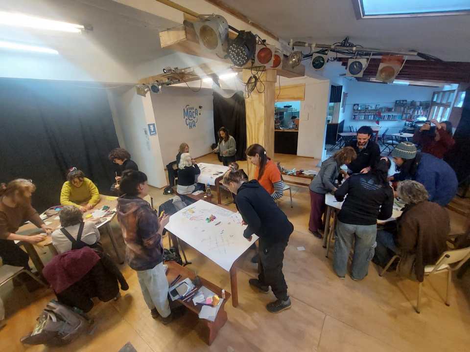 Trabajando en grupo, en Casa Machacha, convocados todos a pensar e imaginar futuridades amables.