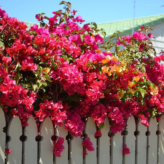 La Santa Rita, también conocida como buganvilla, es una de las trepadoras más populares por su resistencia y colorido. Aunque sus flores verdaderas son pequeñas y blancas, lo que realmente destaca son las brácteas que las rodean, disponibles en tonos vibrantes como el rosa, violeta, rojo, naranja y blanco. Esta planta puede crecer hasta 12 metros de altura, siempre que reciba pleno sol y cuente con un suelo bien drenado. Es resistente a heladas leves, lo que la hace ideal para regiones con inviernos suaves. Además, requiere poda para mantener su forma y tamaño bajo control.