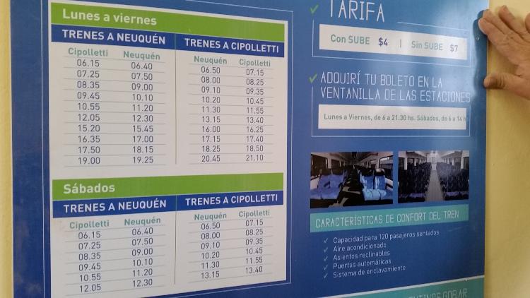 El nuevo servicio del tren funcionará de lunes a viernes de 6.15 a 21.10, y sábados de 6.15 a 13.40. El costo del boleto será como antes se había informado de $4 con la SUBE y de $7, sin la tarjeta.