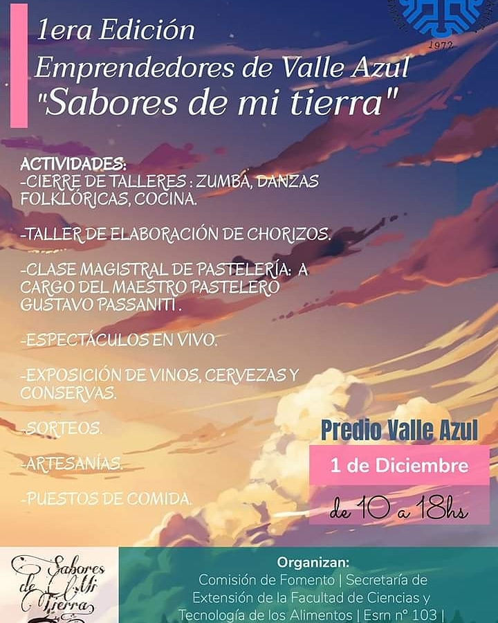 Este domingo primero de diciembre -de 10 de la mañana a 18- se dará cierre a la actividad que convoca a los nuevos emprendedores de dicha localidad. Allí se encontrarán para la venta los productos elaborados. En la feria se busca “mostrar a Valle Azul no sólo por su hermoso entorno, sino su historia en la elaboración de alimentos, industrial, en su momento y hoy a escala doméstica”, dice Villano. Escabeches de libre, escabeche de mondongo, escabeche de poroto, escabeche de jabalí, jugos de uva, conservas, encurtidos de peras y cebollas, encurtido de peras y tomates verdes, jaleas de manzanas y menta, cerezas y frutillas en almíbar, son algunos de los productos que habrá el domingo. Además se dará un taller demostrativo sobre la elaboración de chorizos con la particularidad de estar hidratados con cerveza negra y mezcla de especias. Nobleza obliga a prender el fuego.