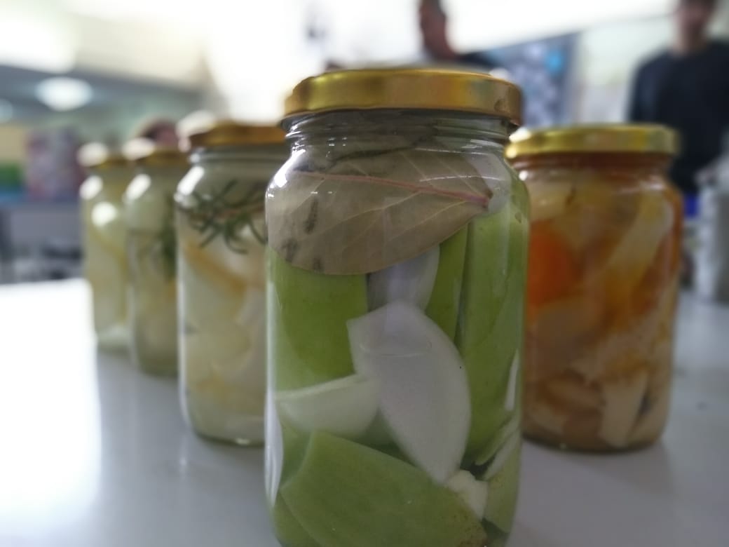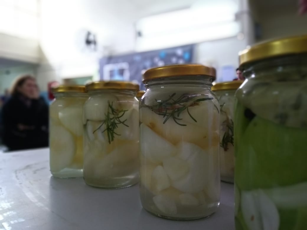 Cuando los intereses surgen desde las bases y las instituciones reconocen esas necesidades y acompañan, se logran alcances significativos para la comunidad. En la Escuela 103 de Valle Azul, los estudiantes de 4to y 5to años junto con un grupo de docentes comenzaron a indagar sobre la alimentación desde diferentes disciplinas filosofía, tecnología, química y ciencias de la tierra. Técnicas de elaboración y conservación fue el tema que más inquietó. La ruta tenía dos direcciones: hacia las familias, que vienen desde hace tanto realizando conservas, y hacia la Facultad de Ciencias de Tecnología de los Alimentos (FACTA) que trabajan el tratamiento de los alimentos.