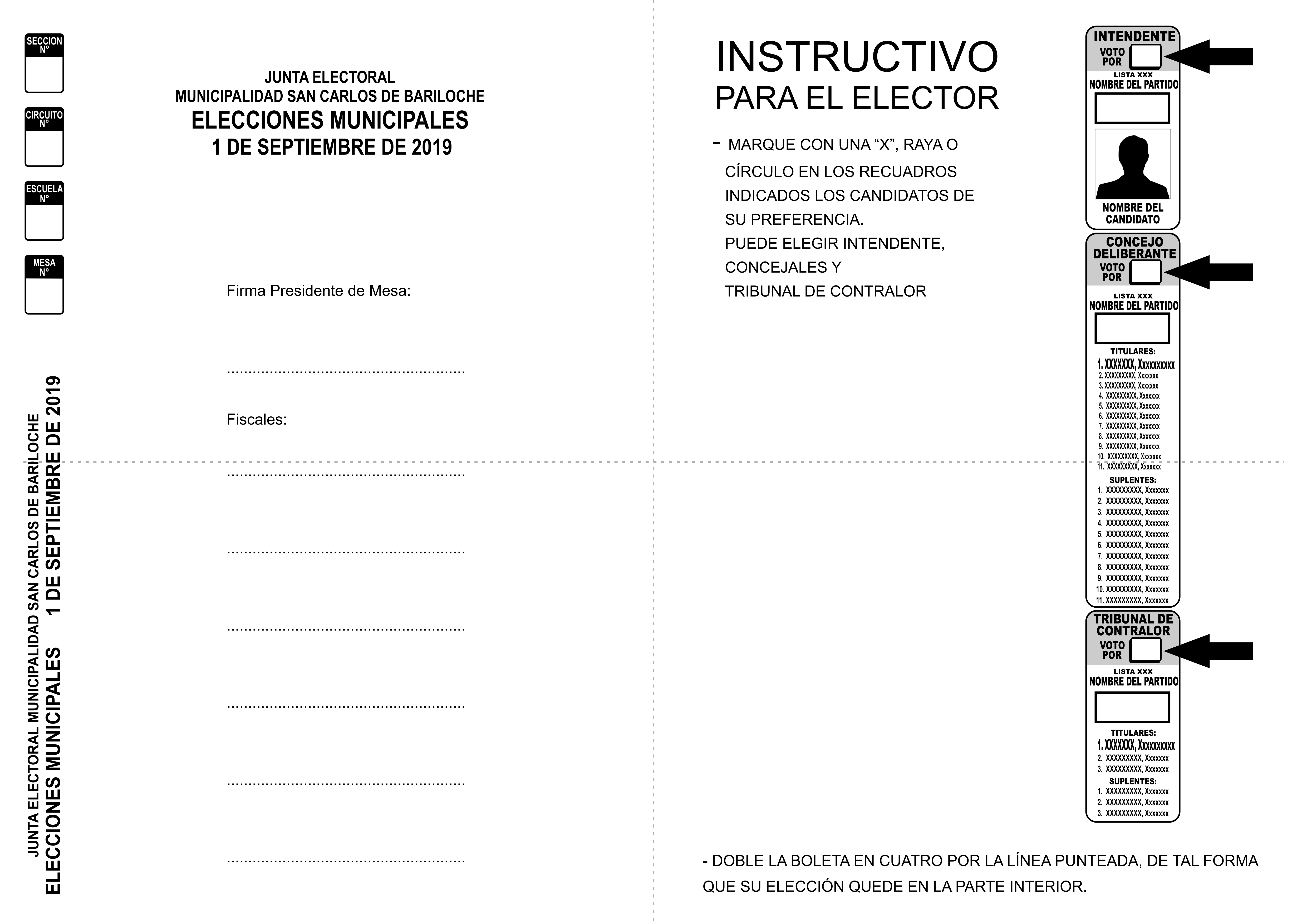 El borrador de la boleta fue confeccionado con la totalidad de nombres de los candidatos que integran las listas, 1 postulante a intendente, 22 nombres de máxima para concejales (incluye suplentes) y 6 postulantes para el Tribunal de Contralor.