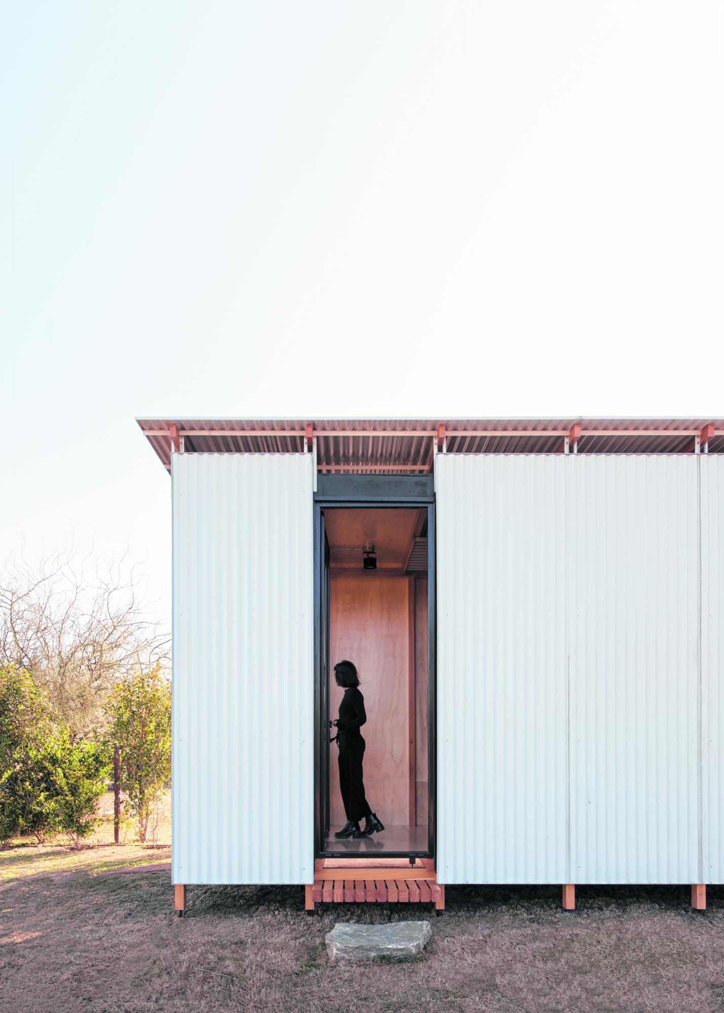 La pieza única es pensada en madera desde su génesis, resolviendo la estructura y las envolventes. Así, se logra capitalizar tanto las posibilidades del sistema constructivo prefabricado como sus cualidades espaciales de forma de lograr un interior de gran calidez.