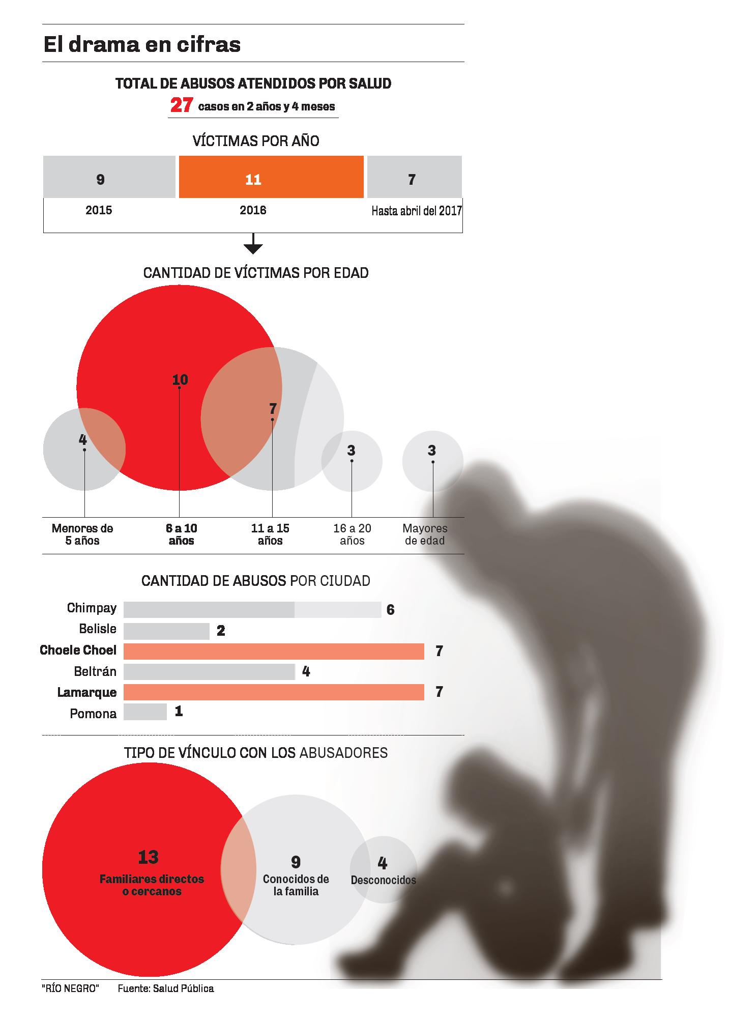 En los últimos tres años se registraron en esta región de la provincia 27 casos, que fueron atendidos por el sistema de salud. Se estima que por cada hecho denunciado existen al menos cuatro más, de este modo en la zona se habrían registrado más de 100 abusos a menores.