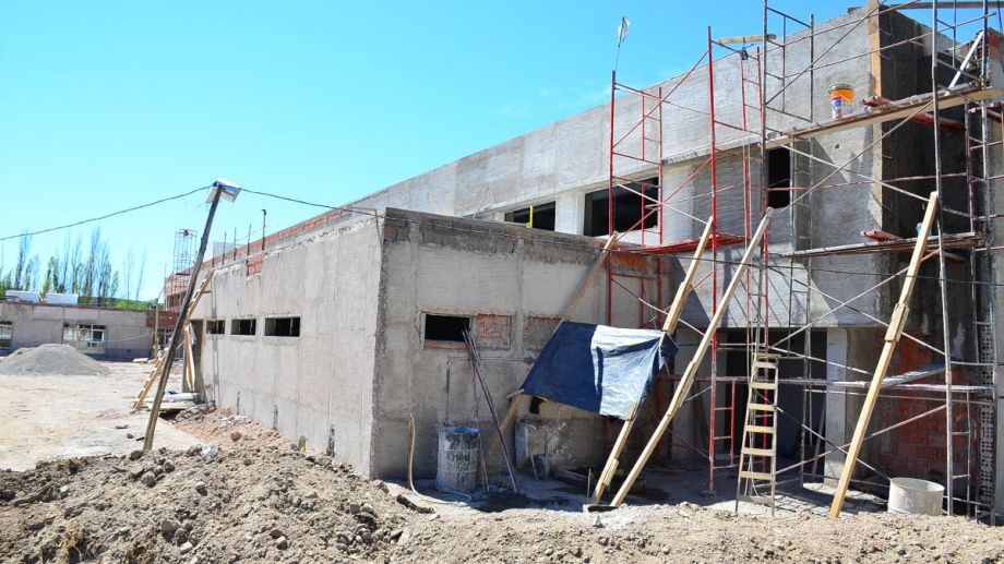 La ejecución de los trabajos ya alcanza el 50 por ciento de la totalidad de las tareas previstas para la construcción el edificio de 2.700 metros cuadrados cubierto dividido en dos plantas, la baja de 1.700 metros cuadrados y la superior de 1.000 metros cuadrados que está ubicado sobre la avenida General Paz, en inmediaciones del barrio Belgrano de Villa Regina.