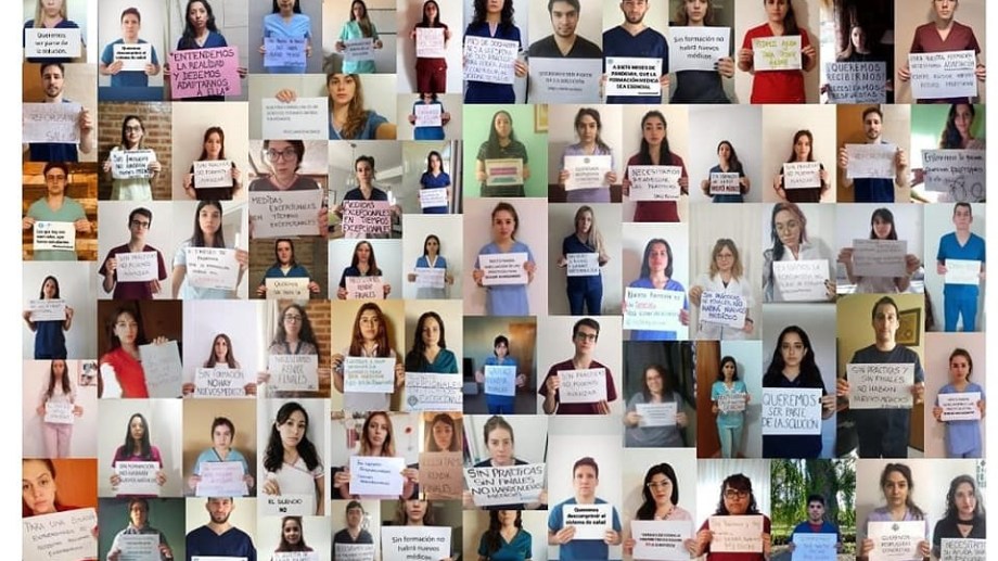 Bajo la consigna «Sin prácticas ni finales, no hay médicxs» lanzaron una acción conjunta a través de las redes sociales que se volvió viral. Cada estudiante compartió su foto y su testimonio para hacer visible esta situación. «Somos parte de los 300 estudiantes de la carrera de Medicina quienes no podemos avanzar en nuestra carrera por falta de adecuación de nuestro plan de estudios. Estamos en nuestros últimos años y para acreditar las materias que estamos cursando nos exigen prácticas hospitalarias que, en este contexo, no hay certeza de cuándo podemos realizarlas», aseguraron en el video que se volvió viral.