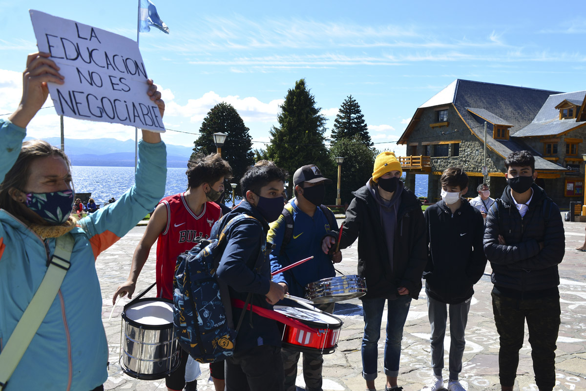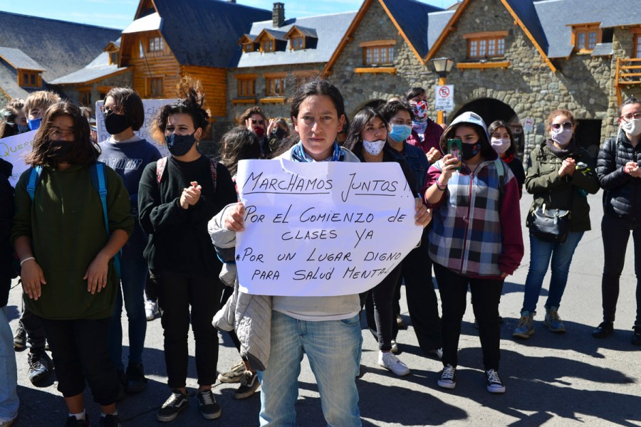 Estudiantes del CET 2, el CET 25 y la escuela secundaria 44 de Bariloche se movilizaron para exigir que el ministerio de Educación termine de poner en condiciones las escuelas y habilite las clases presenciales en esos establecimientos.