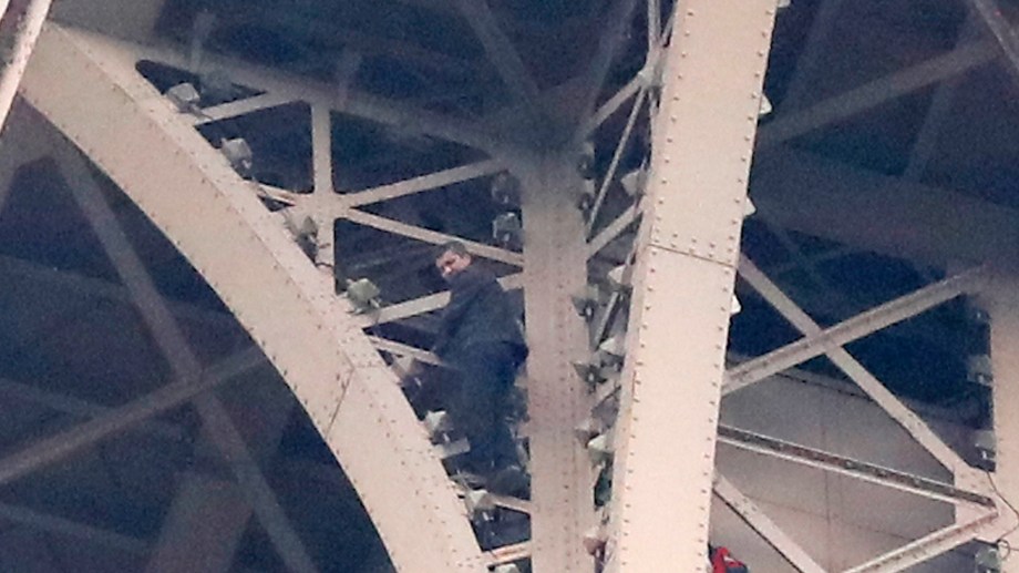 El hombre alcanzó casi la cima del monumento de 324 metros de altura. Se encuentra en el tercera y última plataforma de la Torre.