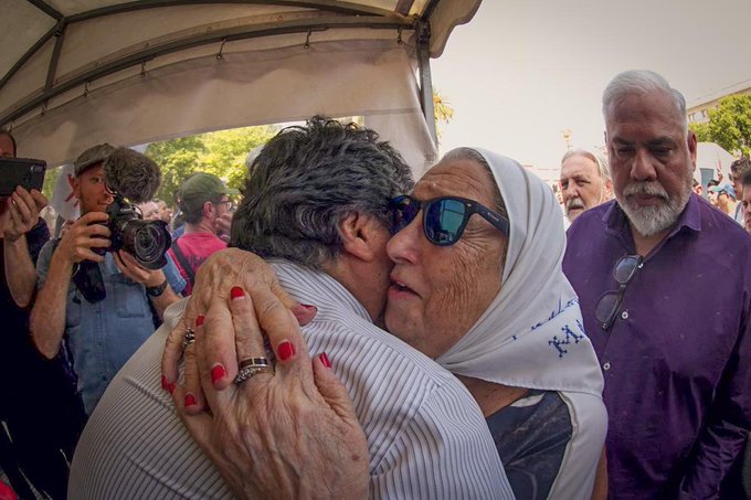 El depuesto presidente de Bolivia, Evo Morales, agradeció hoy al «pueblo argentino y a los organismos de derechos humanos» por el apoyo dado «a la lucha del pueblo» de su país «contra la dictadura», durante un encuentro que mantuvo con la titular de la Asociación Madres de Plaza de Mayo, Hebe de Bonafini, en la histórica Plaza.
